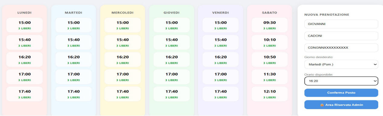 Nell'esempio sopra, la prenotazione è stata fatta per la giornata di martedì alle ore 16.20. Vai alla guida per la prenotazione ***********************